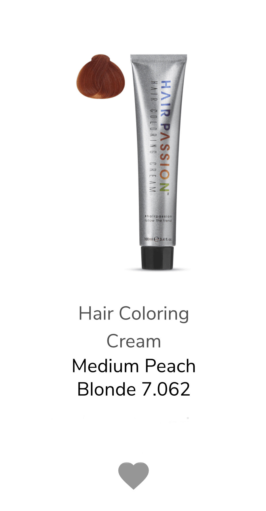 Hair Passion is a new generation of permanent hair color. For the first time using our new generation color pigment technology, we have been able to achieve colors that have not been possible before, such as our Medium Peach Blonde.